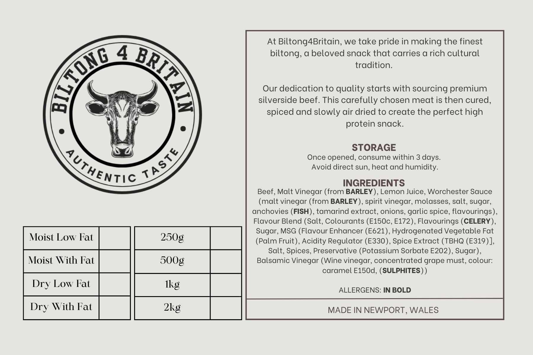 To make moist beef biltong, we use the finest cuts of Silverside beef with a generous amount of fat.